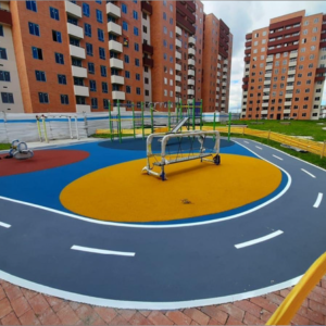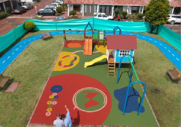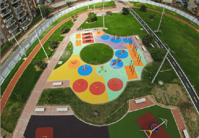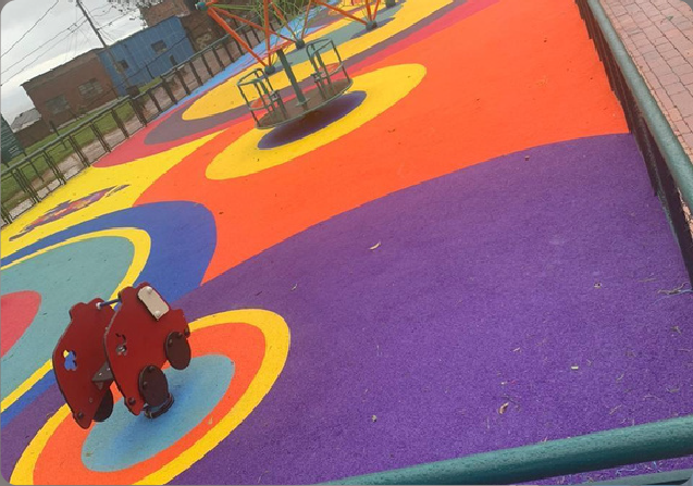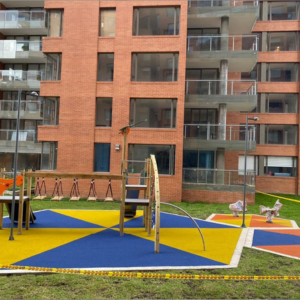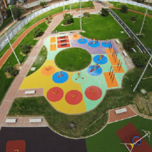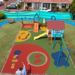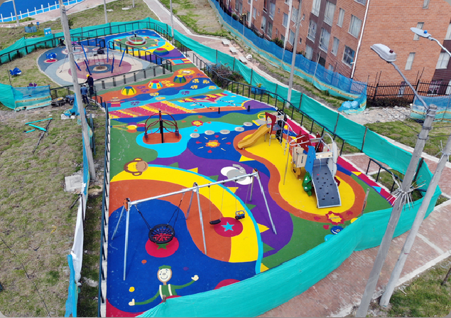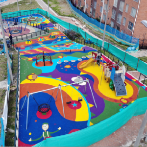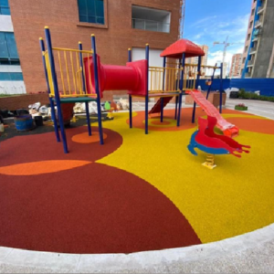 Sistema flexible de caucho granulado, pigmentado. con base ultraabsorbente y resistente. colores y diseños ilimitados.
