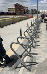 2. Bicicleteros Múltiples o de Parrilla: Ideales para zonas de alto tráfico como universidades o estaciones de transporte, donde se requiere optimizar la capacidad de parqueo en áreas lineales.